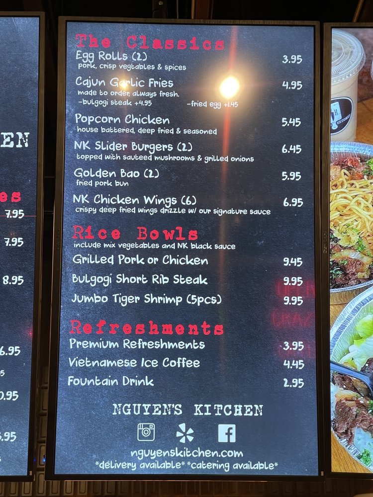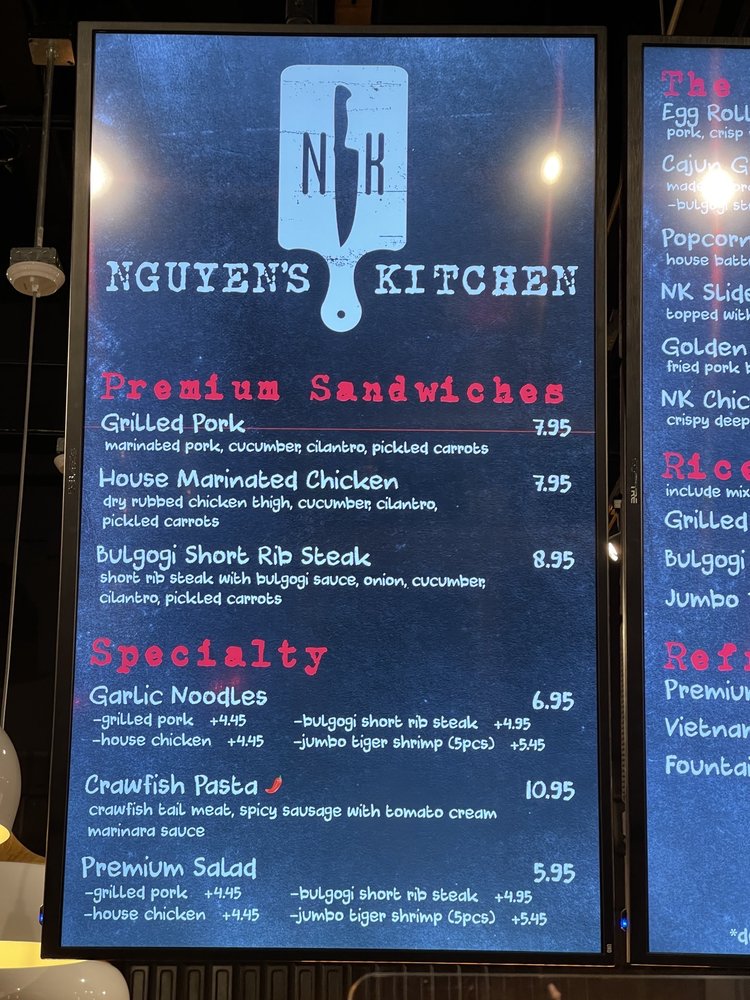 Nguyen’s Kitchen is a Vietnamese-Asian Fusion restaurant located in South Gate, CA, offering a variety of premium sandwiches, rice bowls, and specialty dishes. Their signature dishes include Grilled Pork Sandwich, House Marinated Chicken Sandwich, and Bulgogi Short Rib Steak Sandwich. The Garlic Noodles, Crawfish Pasta, and Premium Salad are also highly recommended. Customers rave about the delicious food, professional service, and trendy ambiance. With options for takeout, delivery, and catering, Nguyen’s Kitchen caters to a diverse range of preferences. The reviews praise the flavorful Banh Mi sandwiches and refreshing Açaí Bowls. Overall, Nguyen’s Kitchen stands out for its fresh ingredients, bold flavors, and welcoming atmosphere, making it a must-visit for Vietnamese cuisine enthusiasts.